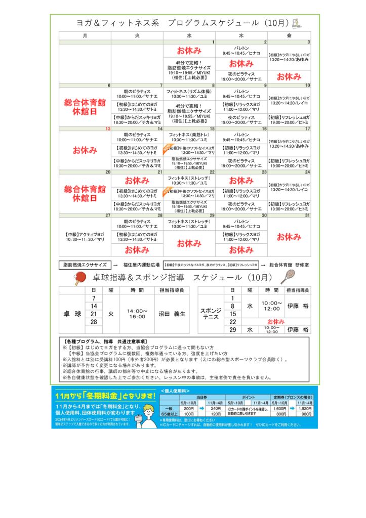 ☆総体カレンダー2025 yoga 10月