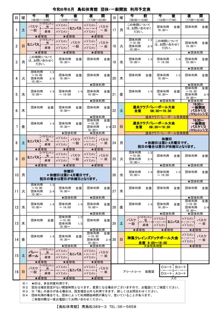島体カレンダー 令和6年6月